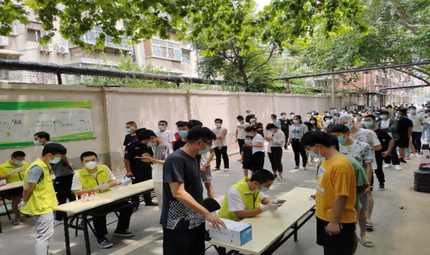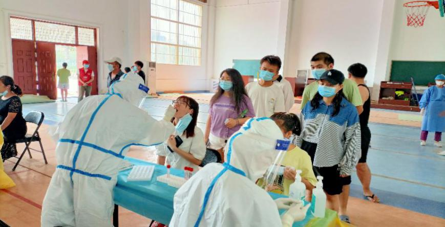 本网讯(文/孙福平 图/郭利生 刘江涛)按照郑州市新冠肺炎疫情防控领导小组关于开展第四轮全员核酸检测(25号公告)和学校疫情防控领导小组的安排部署,鉴于校园封闭和家属院老同志的需求等特殊情况,东明校区疫情防控专班迅速行动,积极协商第一附属医院和未来路康复社区派人到东明校区为封闭在校园内的学生、管服人员约1800人和家属院住户进行第四轮核酸检测。2021年8月15日中午,第一附属医院积极响应迅速集结医护人员和学生志愿者约50人全部到位,学工和辅导员对学生进行有序组织、离退处和保卫处及时通知住户,下午2:30,全部检测完毕,参检2094人次。此前,即8月11日,第三附属医院已安排医护人员对黄码、次次密接者等居室隔离的学生和一线管服人员共约270人增做一次核酸检测。