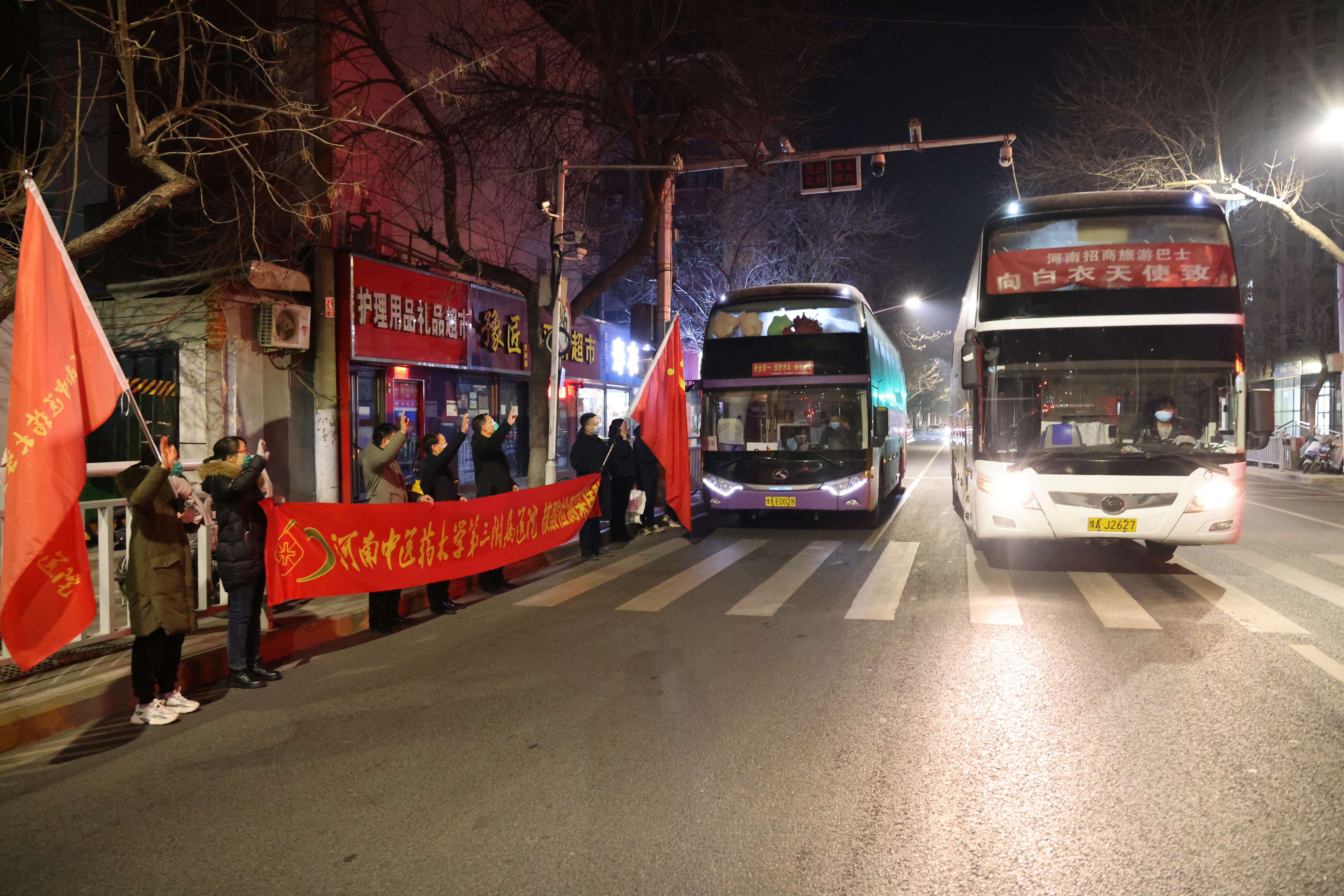 本网讯(文/潘向昆 图/田辉)2022年1月15日凌晨6:00,三附院150人核酸检采集队员出征助力郑州抗疫,院党委书记周运峰,党委委员、副院长高翔,党委委员、工会主席蔡庆春和相关职能部门同志欢送队员。