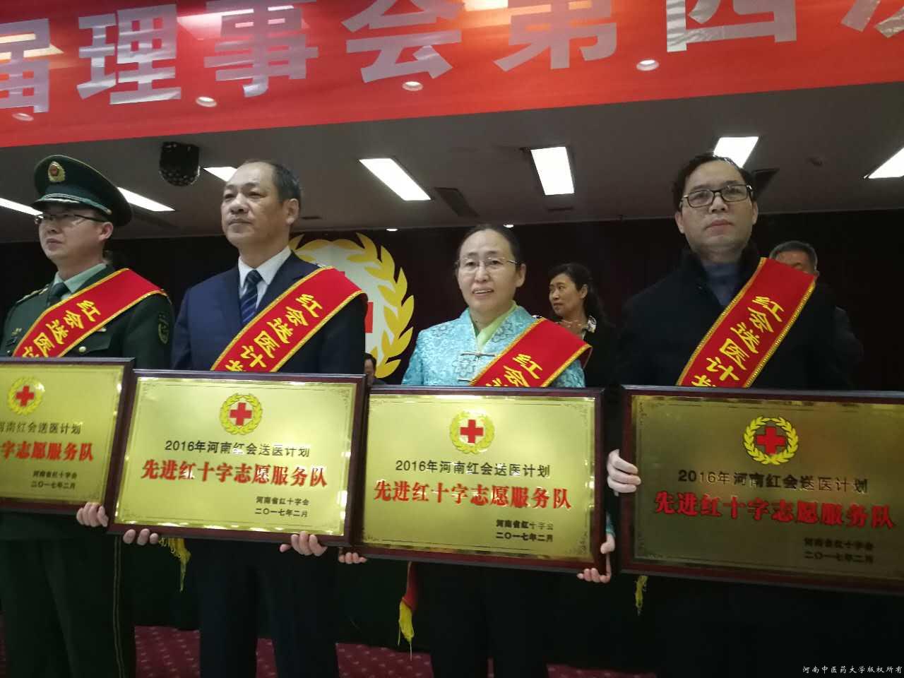 在2017年2月16日召开的“河南省红十字会第五届理事会第四次会议”上,leyu·乐鱼(中国)体育官方网站第一附属医院、第二附属医院以及学校16名红十字送医志愿者由于在2016年“送医计划”志愿服务中表现突出,受到了表彰。第二附属医院党委书记王海亮、第一附属医院副院长李素云代表医院上台领奖;第二附属医院工会主席、志愿服务队队长刘会勋同时被评为“红会送医计划”先进工作者,学校、第一附属医院志愿服务队队长参加了会议。