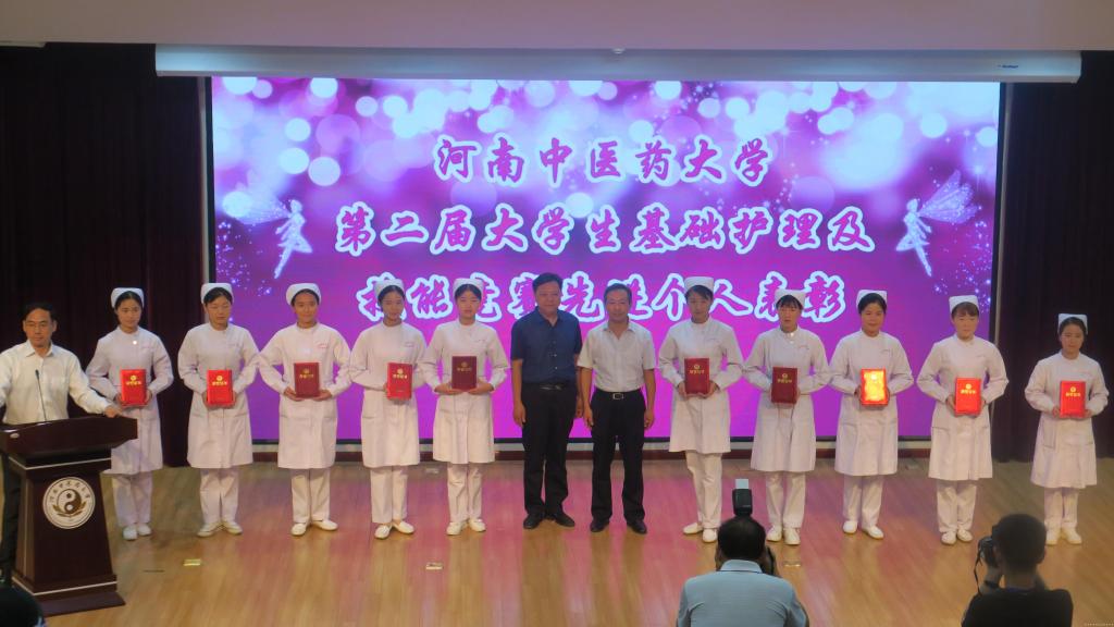 副校长徐江雁、纪委书记王少玉为学校第二届护理基础及技能竞赛成绩优秀学生颁奖