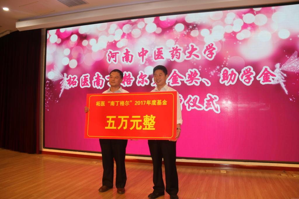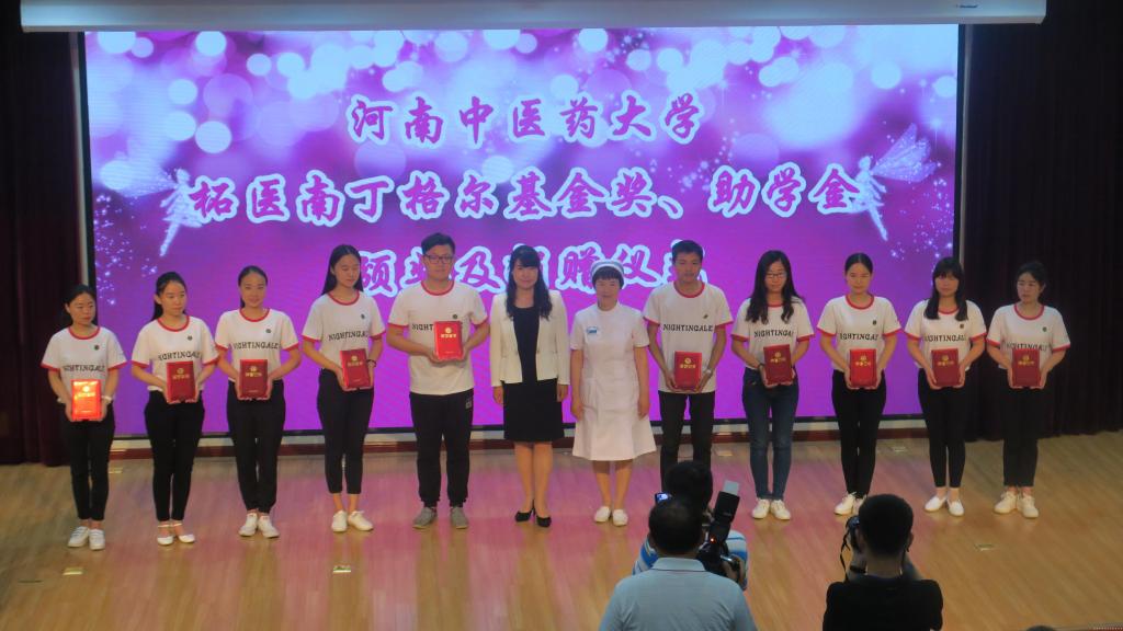 表彰会上,举行了柘医“南丁格尔”基金奖助学金颁发和2017年度基金捐赠仪式,柘城县人民医院护理部主任、第45届“南丁格尔奖”获得者、南丁格尔实验班兼职班主任宋静,南丁格尔实验班班主任、护理学院党总支书记尹丽为第一期和第二期“南丁格尔”实验班获得奖学金、助学金的29名同学颁奖。护理学院院长杨英豪代表学校接收鲍撼东副书记代表柘城县人民医院捐赠的柘医“南丁格尔”2017年度基金。