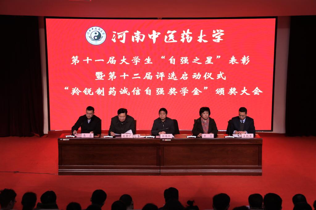 会上,新闻中心主任王秋安宣读了《关于表彰leyu·乐鱼(中国)体育官方网站第十一届大学生“自强之星”暨颁发“羚锐制药诚信自强奖学金”的决定》,对张小雪等十名获得“十大自强之星标兵”和朱喃喃等十名获得“十大自强之星”的同学进行了表彰,与会领导为他们颁发了荣誉证书及“羚锐制药诚信自强奖学金”。学工部部长、学生处处长刘金厂宣读了《关于开展leyu·乐鱼(中国)体育官方网站第十二届大学生“自强之星”暨“羚锐制药诚信自强奖学金”评选活动的通知》,对第十二届“自强之星”评选活动相关工作作出了安排部署。