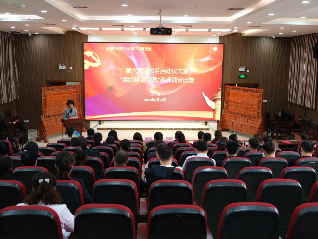 本网讯(文/吴金苗 图/田辉)在第26个“世界读书日”到来之际,2021年4月22日下午,由三附院工会举办的“书香阅读砺初心·百年梦圆颂党恩”第六届读书月启动仪式暨“读经典·颂党恩”经典诵读比赛活动在学术中心举行。三附院党委副书记陶洁、纪委书记刘会勋及100多名教职工参加活动。