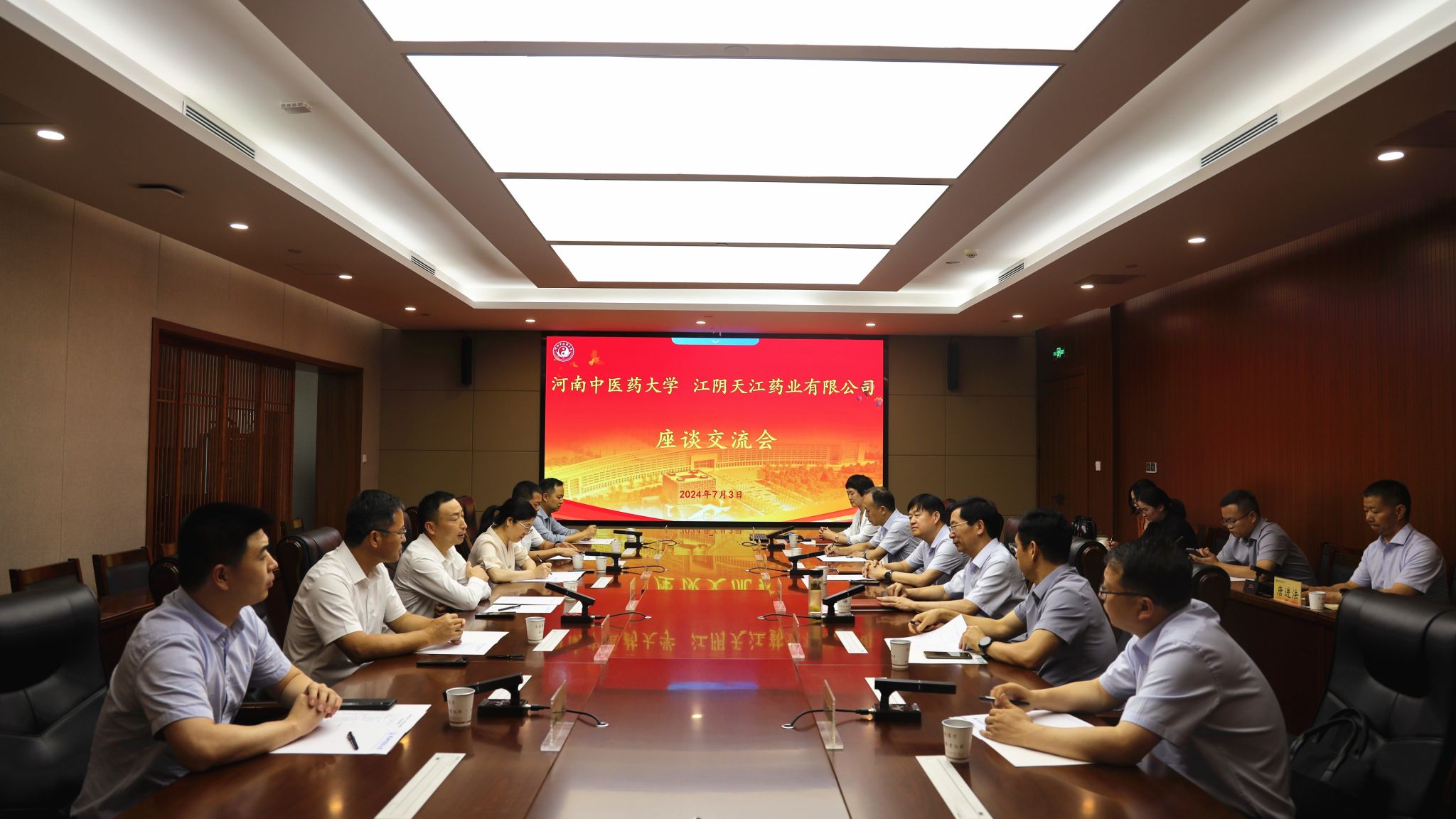 本网讯(文/图 张明远)2024年7月3日,江阴天江药业有限公司党委书记、总经理王龙虎一行6人莅临leyu·乐鱼(中国)体育官方网站考察,双方在俊学综合实验楼B605会议室举行了会谈。校长王耀献及相关部门负责人参加了座谈交流会。会议由副校长彭新主持。
