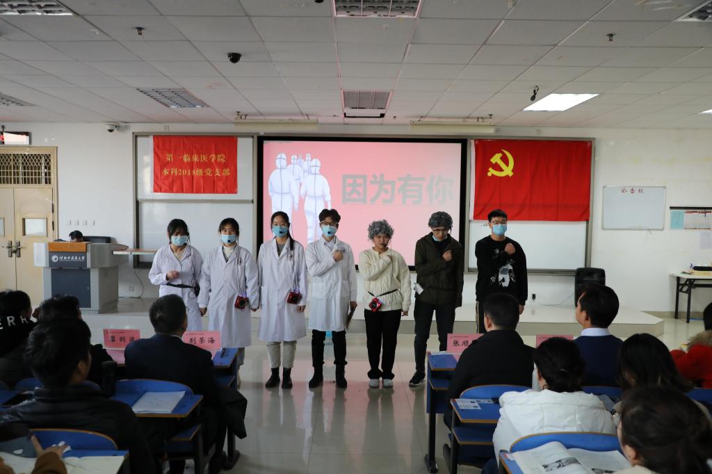 活动中,支部书记贾萌萌详细介绍了支部党建工作及疫情防控工作开展情况,四名学生党员分享了自身抗疫故事和心得体会,共同观看了支部师生党员创作的视频《奋斗燃青春,抗疫新青年》及话剧《因为有你》。