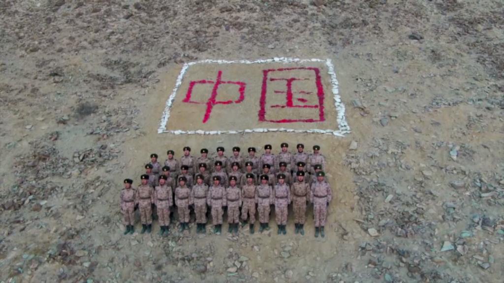 视频中有一个画面格外显眼在边防官兵们列队准备迎敌反击用生命捍卫祖国领土时在他们前方的石头上