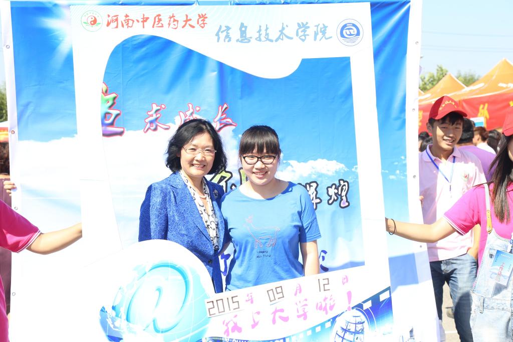 信息技术学院在服务台前设立了醒目的照片墙,并安排专人负责摄影,院长郑玉玲也颇有兴致地在这里与现场师生以及家长合影留念。在听取该院党委书记张峥丽有关迎新情况的汇报后,郑玉玲院长语重心长地说:“网络信息技术的运用是未来的发展方向,中医药文化也要跟得上形势,与其进行深度融合,把中国几千年优秀的中医药文化推出国门,走向世界,让更多的人了解中医,喜爱中医,信任中医。”