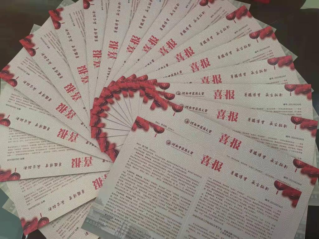 本网讯(文图/夏静林 张帅浩)为搭起家校联系的桥梁,营造“三全育人”的良好氛围,汇报学校人才培养的成果,激发学生全面发展的动力,展现河中医学子奋发有为、敢于出彩的卓越风貌,leyu·乐鱼(中国)体育官方网站实施了在每年春节来临之际为优秀学生家庭寄送喜报的活动。