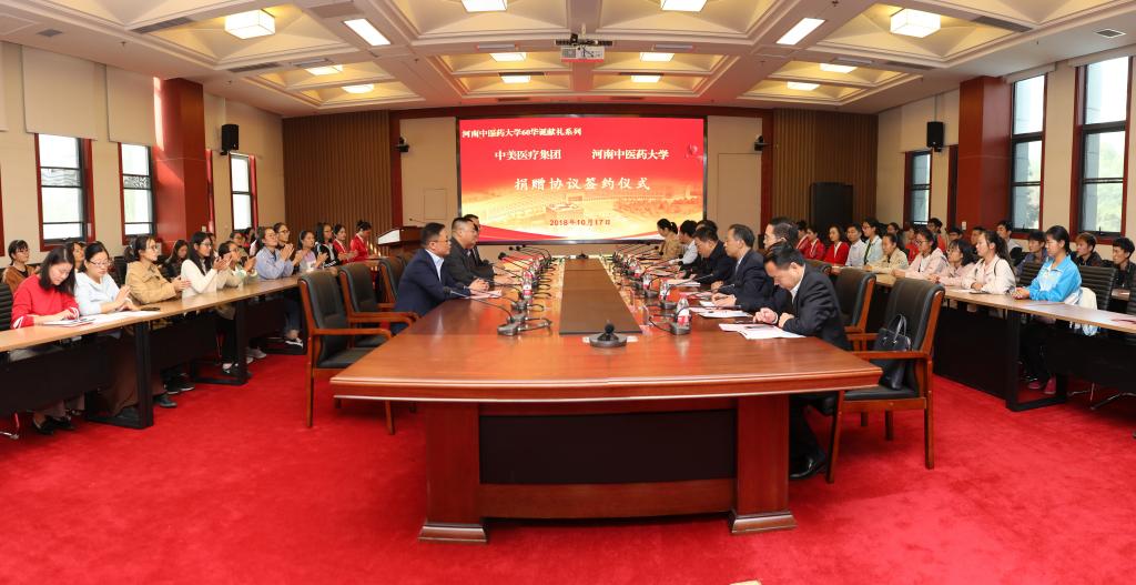 2018年10月17日,leyu·乐鱼(中国)体育官方网站、中美医疗集团捐赠协议签订仪式在leyu·乐鱼(中国)体育官方网站图书馆第三报告厅举行。中美医疗集团总裁、leyu·乐鱼(中国)体育官方网站94级优秀校友陈广飞向母校捐赠5000万元人民币,助力母校及河南中医药事业发展。中美医疗集团总裁陈广飞、副总裁秦国亮、河南整形美容医院总经理王军、董事长秘书苏龙飞;校党委书记别荣海,校长许二平,校党委委员、副校长徐江雁及有关部门、单位负责人参加捐赠仪式。仪式由徐江雁副主持。