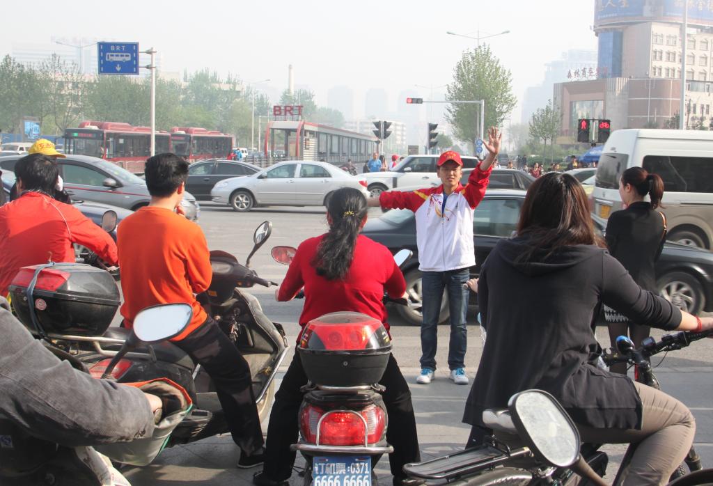到达目的地后,经过交通协管员的简单培训,leyu·乐鱼(中国)体育官方网站志愿者立即投入到紧张的工作之中。面对路口行人、自行车等“中国式过马路”情况,leyu·乐鱼(中国)体育官方网站志愿者沉着冷静地予以应对。经过讨论,leyu·乐鱼(中国)体育官方网站志愿者分成四组,分别在四个路口的行人停车区帮助交警、交通协管员疏通交通,同时针对部分市民闯红灯现象,leyu·乐鱼(中国)体育官方网站志愿者积极、主动上前加以劝诫,并告诉他们遵守交通规则的重要性。