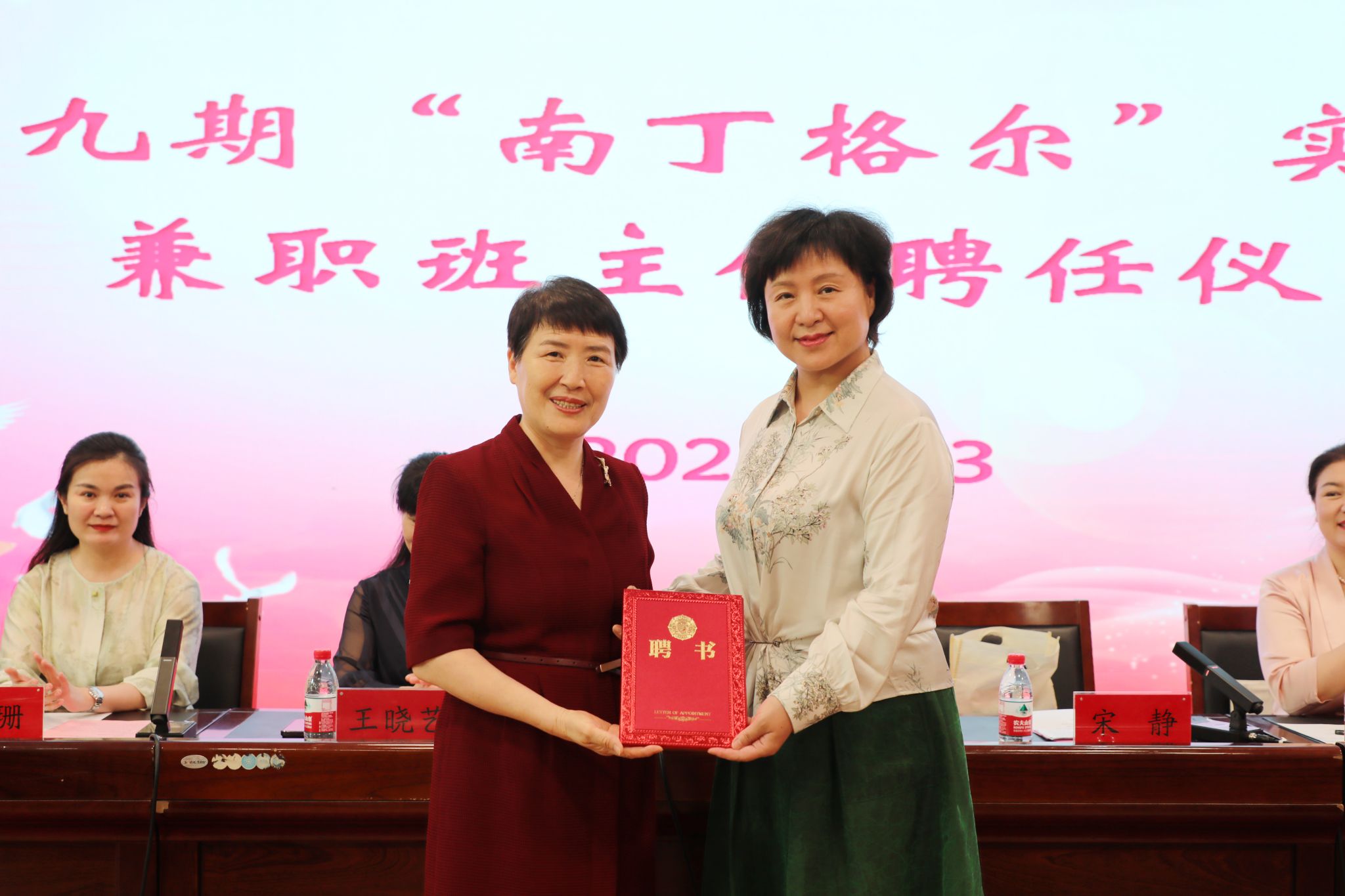 会上,田力为宋静颁发第九期“南丁格尔”实验班兼职班主任聘书。