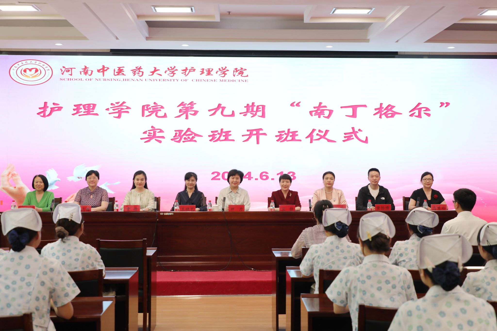 本网讯(文/王通悦 赵静雯 图/闫睿涵)2024年6月13日,护理学院在图书馆第二报告厅举行第九期“南丁格尔”实验班开班仪式,校党委委员、副校长田力,第45届“南丁格尔奖章”获得者宋静,心理健康教育与咨询中心主任、党委学生工作部副部长、学生处副处长王晓艺,校团委副书记黄怡博,护理学院全体领导班子成员,第九期“南丁格尔”实验班学员及师生代表参加开班仪式,开班仪式由护理学院副书记马慧玲主持。