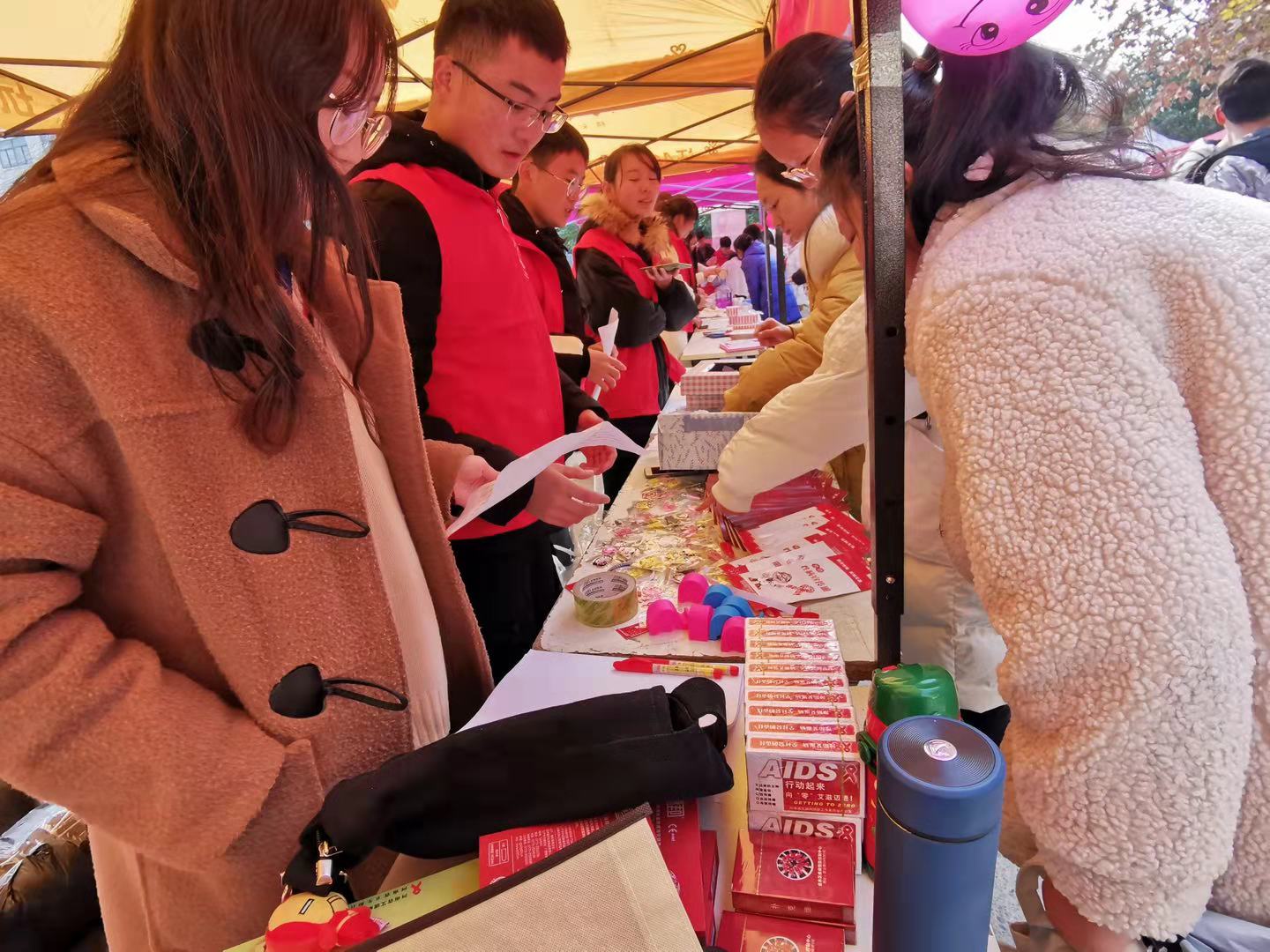 12月1日,“关艾”红丝带协会在杏苑餐厅门前举办了“世界艾滋病日”游园活动。活动现场,志愿者们集体宣誓并签名,表达了自己防艾、抗艾的决心,并为现场同学发放了红丝带和宣传页,耐心讲解了防艾、抗艾相关知识。活动中,艾滋病知识有奖竞答、“水交换”小游戏、朗读者、身临其境等小环节,有效宣传普及了艾滋病防治知识,提高了大学生艾滋病的防护意识。