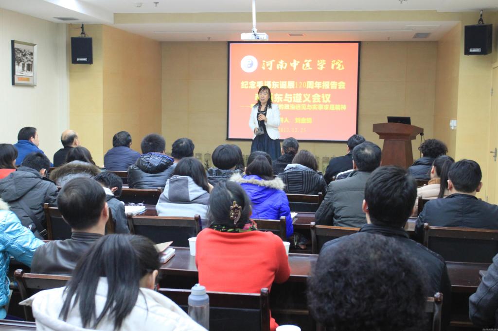 今年12月26日是毛泽东同志诞辰120周年纪念日。为了缅怀毛泽东同志的伟大历史功绩,leyu·乐鱼(中国)体育官方网站于2013年12月25日下午举办专题报告会,邀请思政部副教授刘金鸽主讲。党委副书记张丽霞出席报告会。报告会由党委宣传部部长刘保庆主持。党委各部门负责人、新校区各党总支书记、思政部教师、学生代表参加报告会。
