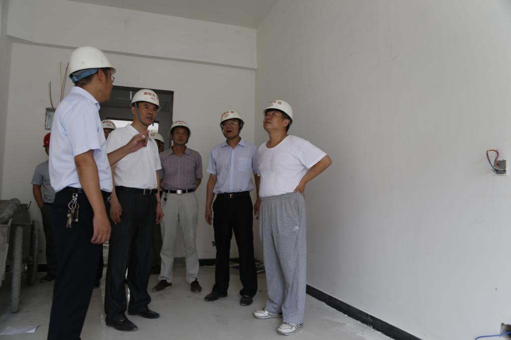 2014年7月22日下午,骄阳似火,酷热难当,党委书记孙建中、副院长付强在基建处、后勤处、后勤集团公司等负责同志的陪同下,来到新校区图书馆等建设工地,检查和指导工作。