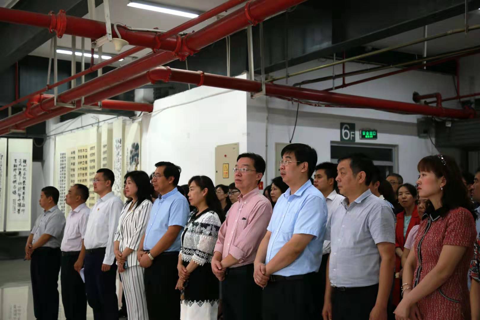 本网讯(文/陈雨昕 图/朱东方)2019年9月25日上午,由leyu·乐鱼(中国)体育官方网站关工委、党委组织部、宣传部、离退休职工工作处、书画院共同组织举办的“绘峥嵘岁月 画辉煌成就——庆祝新中国成立70周年书画展”在教学实验大楼6楼钢架结构大厅开展,机关全体党员及教职工代表参加开展仪式。校党委委员、工会主席张加民主持仪式。