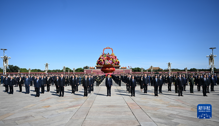 9月30日上午,党和国家领导人习近平、李强、赵乐际、王沪宁、蔡奇、丁薛祥、李希、韩正等来到北京天安门广场,出席烈士纪念日向人民英雄敬献花篮仪式。新华社记者 申宏 摄