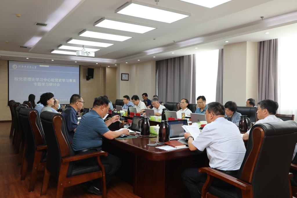 本网讯(文/王赞 张娟娟 图/秦东仁)为进一步推进党史学习教育走深走实,使党史专题学习研讨不断向广度拓展、向深度推进,2021年6月28日下午,学校党委理论学习中心组在教学实验综合大楼BS605会议室召开专题学习研讨会,重点围绕对新民主主义革命时期历史、社会主义革命和建设时期历史、改革开放新时期历史、党的十八大以来历史的学习情况开展集中研讨交流。校党委理论学习中心组全体成员参加会议。会议由校党委理论学习中心组组长、党委书记别荣海主持。