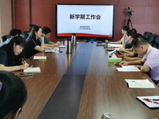 本网讯(文图/王献竹)为保障新学期各项工作顺利开展,2021年9月8日下午,国际教育学院在1101会议室召开2021年秋季学期工作会。学院领导班子成员和全体教职工参加会议。会议由院长周友龙主持。