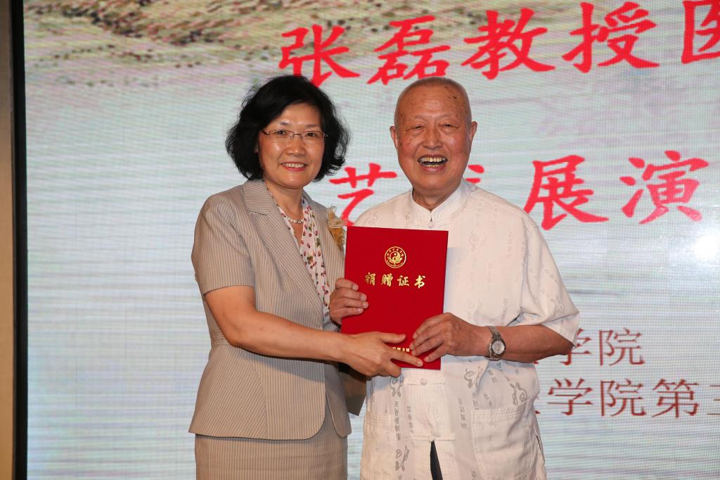 院长郑玉玲为张磊教授颁发图书捐赠证书