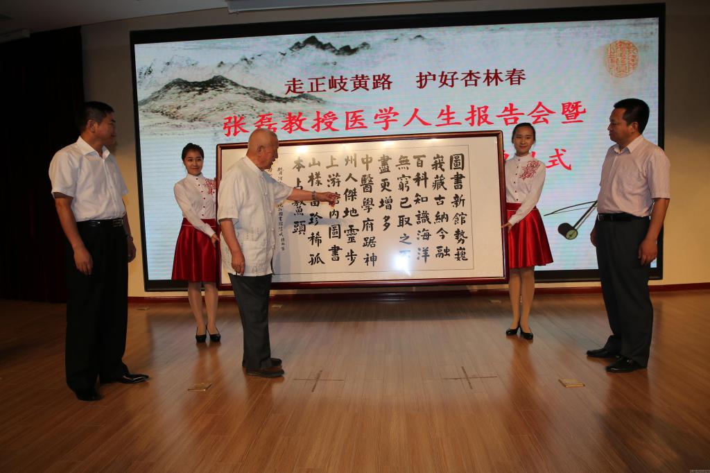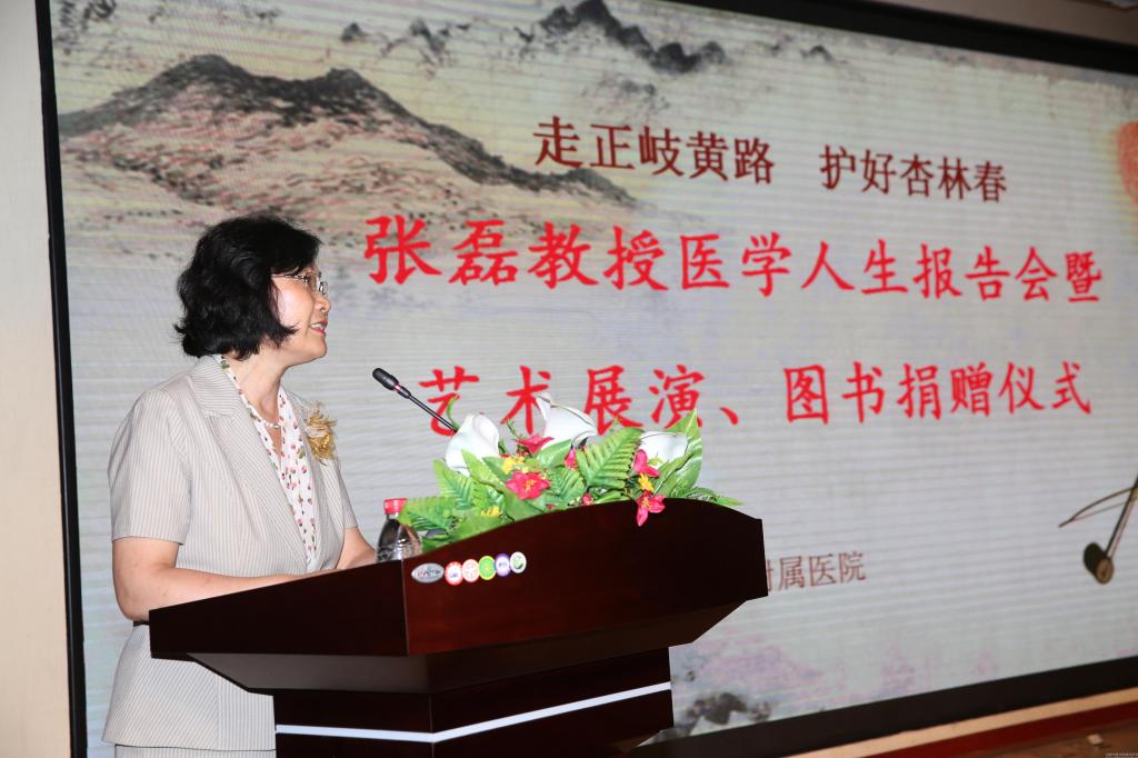 在蓝天白云之下,leyu·乐鱼(中国)体育官方网站新建成的图书馆格外挺拔,第一报告厅里座无虚席,不时传出掌声、笑声和音乐声,2015年7月10日下午,“走正岐黄路 护好杏林春——张磊教授医学人生报告会暨艺术展演、图书捐赠仪式”正在这里进行。