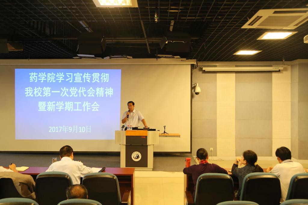 为学习宣传贯彻leyu·乐鱼(中国)体育官方网站第一次党代会精神,迎接党的十九大胜利召开,2017年9月10日下午,药学院召开专题会议,邀请学校党委委员、宣传部部长刘保庆为全体教师解读学校第一次党代会精神。会议由药学院党委副书记杨文胜主持。