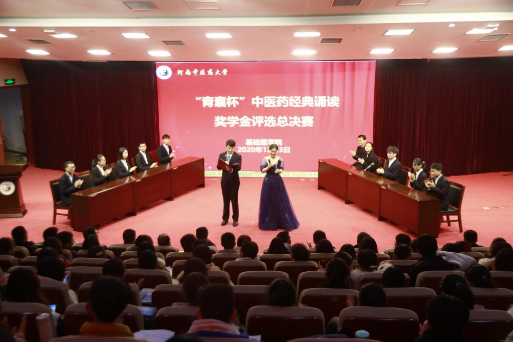 本网讯(图/李圆 文/吴明明)为更好的传承中医药经典,弘扬优秀传统文化,2020年12月3日晚,由校学生处、学生资助中心主办,基础医学院承办的2020年“青囊杯”中医药经典诵读奖学金评选决赛在图书馆第一报告厅顺利开展。