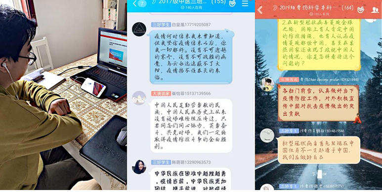 各年级各班通过网络连线的方式,以科学防疫、英雄人物、身边典型、使命担当、身心健康等内容为切入点,开展了一场场别开生面的主题班会,使大学生的交流学习、思想共鸣在时空线上前行,主动讲好抗疫期间感人的中国故事。