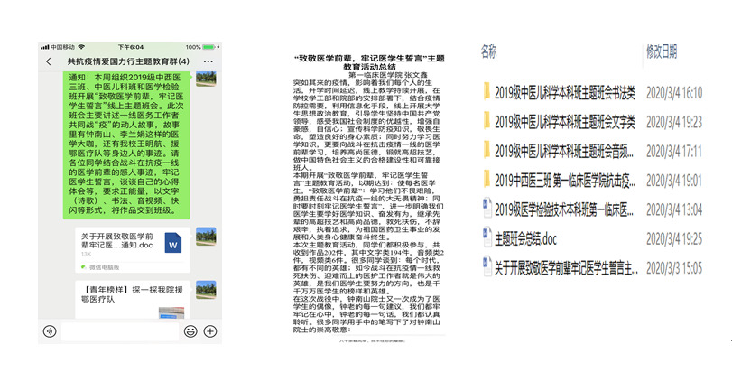 各院部还结合自身学生工作特点与传统,以抗击疫情为切入点,以线上活动为主,通过“读”、“写”、“拍”、“画”、“创”等形式,开展了一系列丰富多彩的文化活动,引导学生用自己的视角、自己的语言、自己的体验、自己的方式进行网络创作,表达感恩和大爱,激发青年大学生的责任和担当。