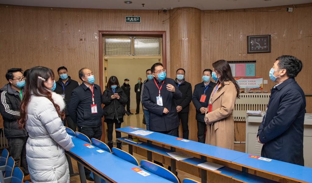 霍金花、郑邦山等一行实地察看了leyu·乐鱼(中国)体育官方网站考务办公室、防疫办公室、无线电监控处等地,认真听取leyu·乐鱼(中国)体育官方网站2021年研考工作的准备情况、考场分布情况、疫情防控工作及应急预案举措,亲切慰问了现场工作人员,并就leyu·乐鱼(中国)体育官方网站考务培训内容及如何做好本次研考的疫情防控工作与在场工作人员进行指导交流。