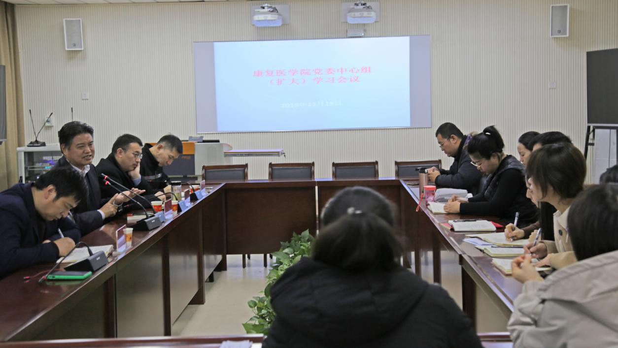 本网讯(文图/黄金)为进一步深入贯彻落实党的十九届四中全会精神,认真学习领会习近平对中医药的重要指示精神,2019年12月19日下午,康复医学院在实训楼1101会议室召开党委中心组(扩大)学习会议。康复医学院党政班子和全体教职工参加会议。会议由康复医学院党委书记张运克主持。