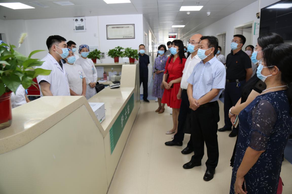 在龙子湖院区,翟剑波一行对院区门诊、急诊、药房、检验等部门以及新成立的康复中心、血液肿瘤等病区进行了深入的考察,详细询问了院区人员队伍、检验设备、药品配备、后勤保障等情况,主持召开了现场办公会,听取了龙子湖院区办公室主任丁波等部门负责人的汇报。