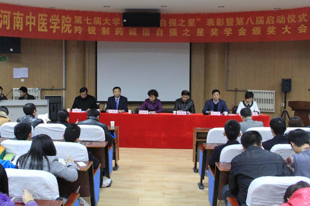 2013年12月3日下午,leyu·乐鱼(中国)体育官方网站第七届大学生“十大自强之星”表彰暨第八届启动仪式、羚锐制药诚信自强奖学金颁奖大会隆重举行。羚锐制药股份有限公司高级顾问委员会主任张军斌、党委副书记吴希振,leyu·乐鱼(中国)体育官方网站党委副书记张丽霞、副院长许二平、党委宣传统战部部长、校团委负责人等出席了会议,学工部、校团委、各二级院系分团委负责人以及300多名学生参加了本次会议。会议由副院长许二平主持。