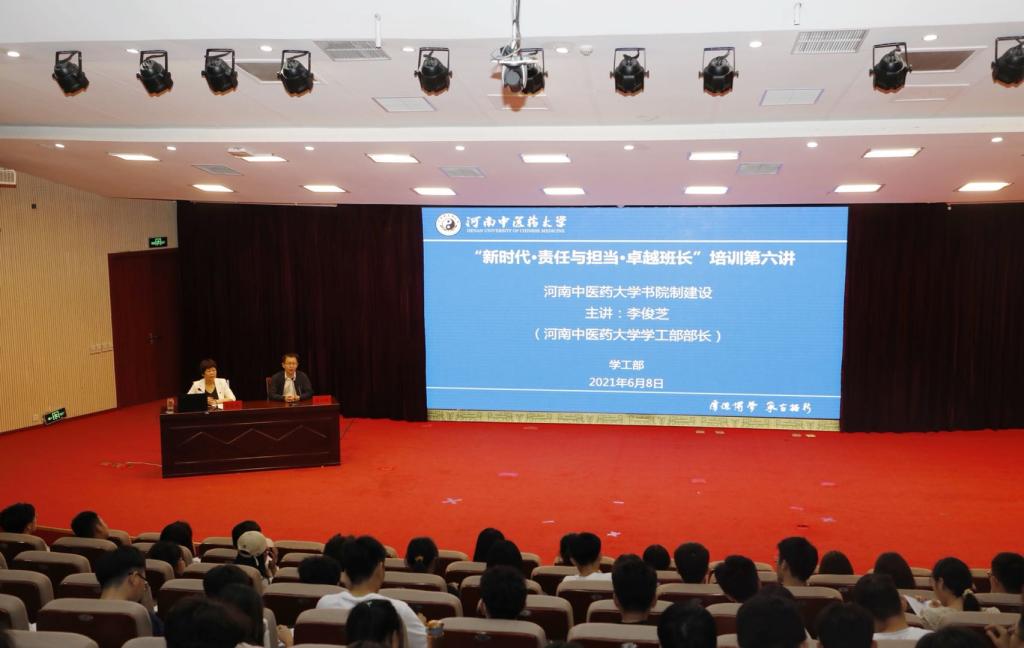 本网讯(文图/付珍娜)2021年6月8日,由学工部主办的2021年“新时代·责任与担当·卓越班长”培训班第六讲在图书馆第一报告厅举行。校学工部部长李俊芝以“leyu·乐鱼(中国)体育官方网站书院制建设”为题,为龙子湖校区全体班长、药学院、管理学院、信息技术学院、外语学院全体团支书、副班长、学生会全体成员、社团负责人进行培训。培训由学工部副部长李志轩主持。