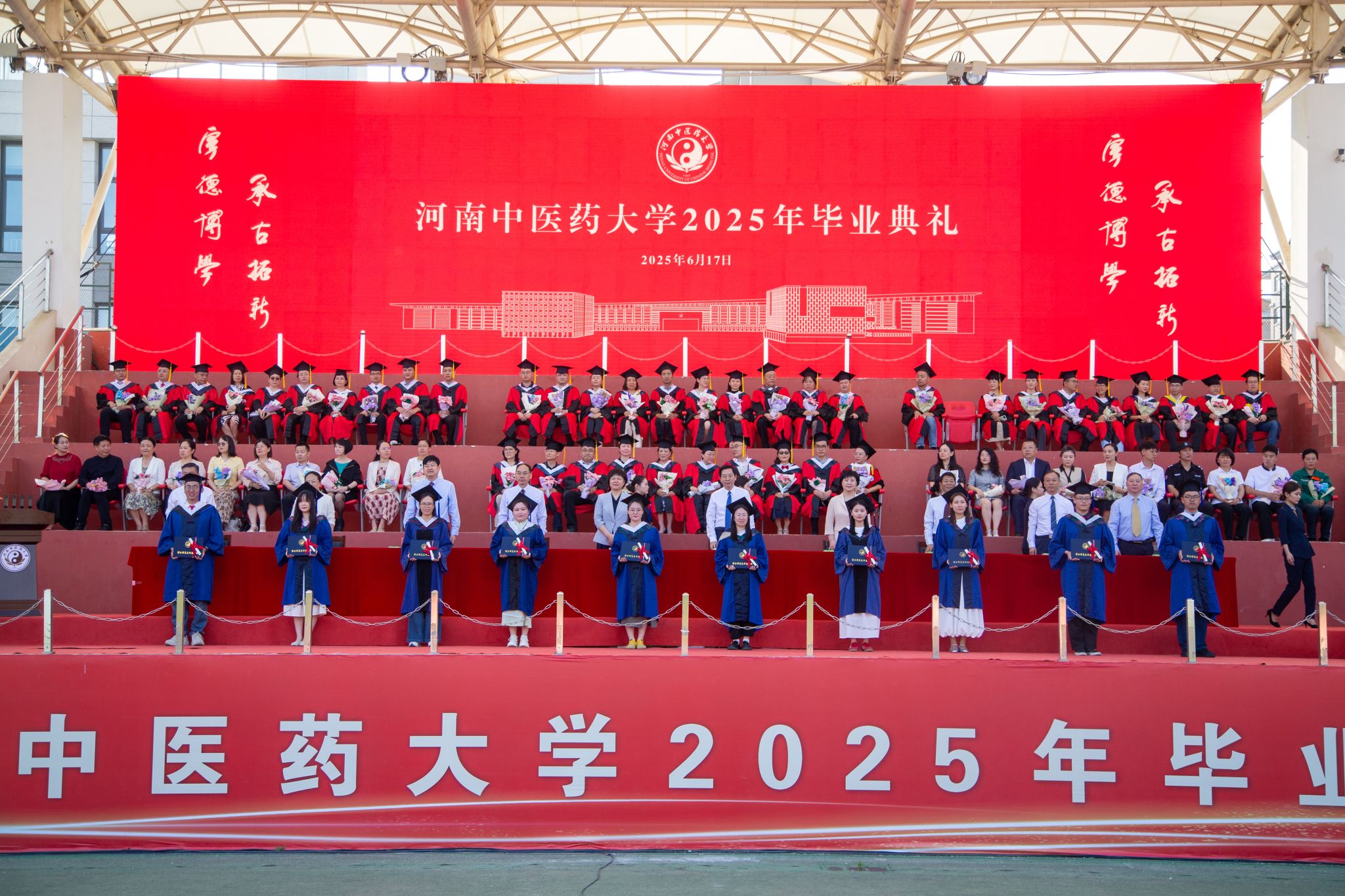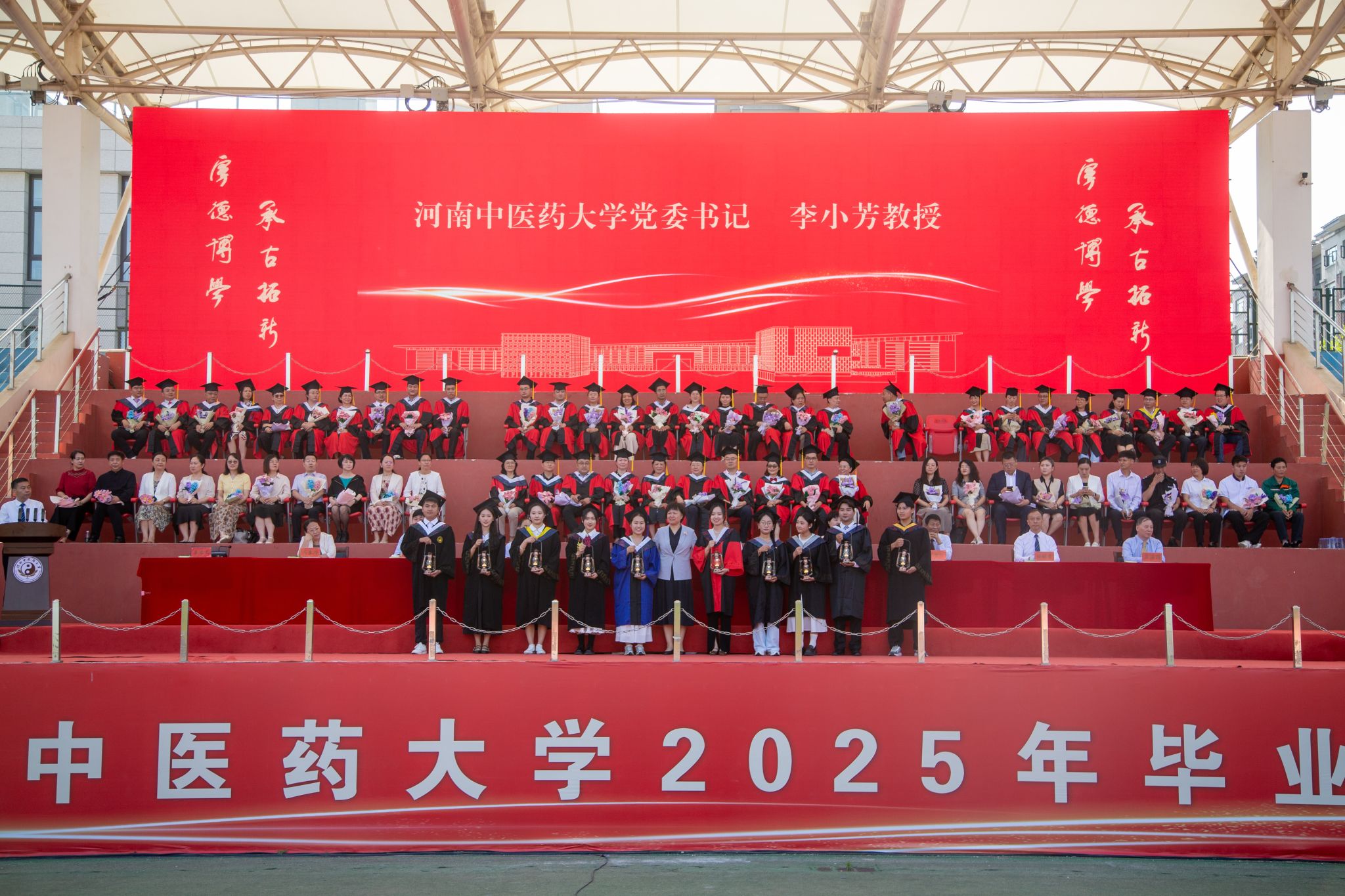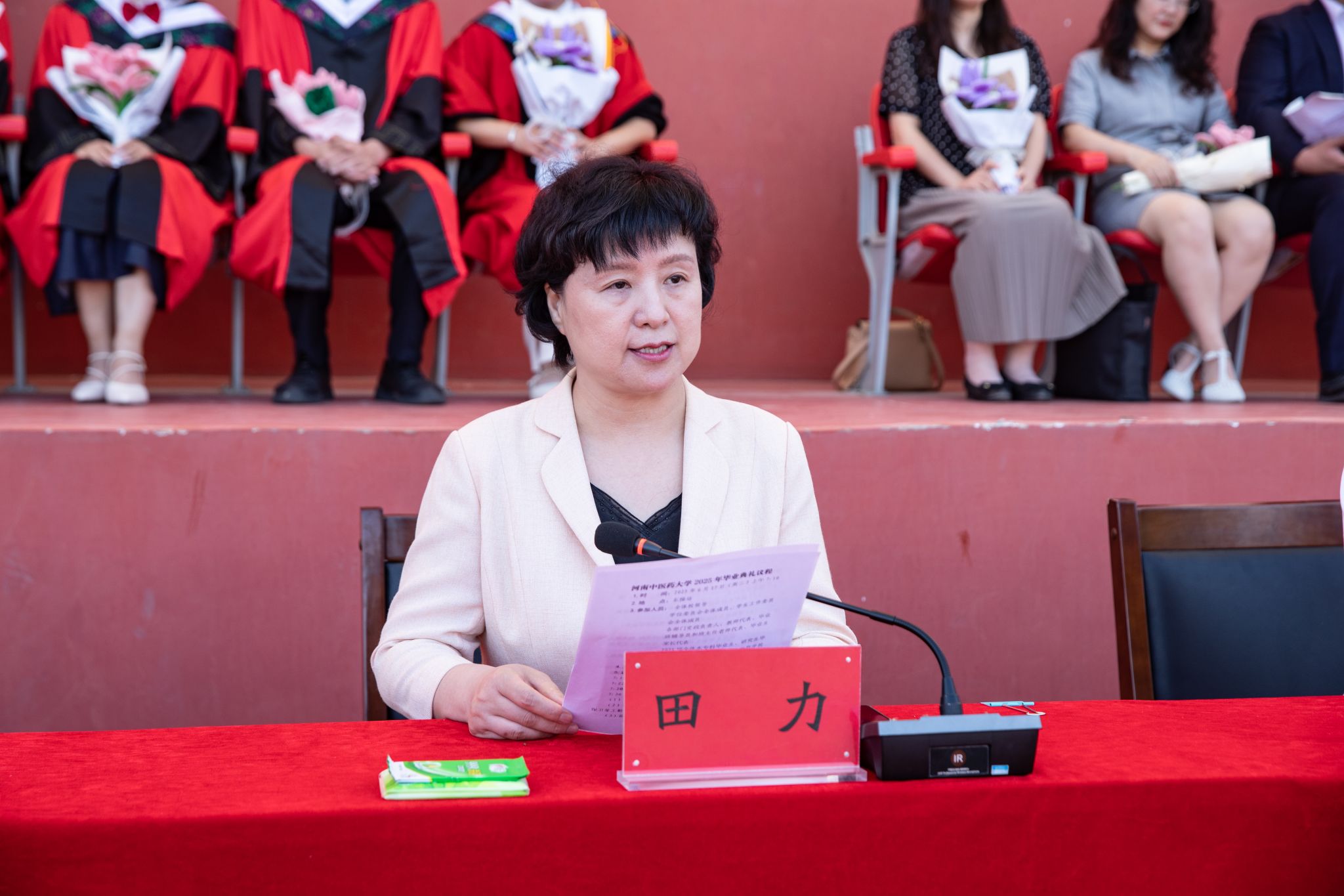 本专科毕业生代表向天悦、研究生毕业生代表郭威振相继发言。他们回忆了与母校和师友同窗,携手成长、砥砺前行的峥嵘岁月,表达了“把‘小我’融入‘大我’”的家国情怀和实干担当。药学院白莉教授代表全体教师勉励同学们永葆“精”字当头,坚守“诚”字为本,勇担“传”字使命,在推动中医药事业传承创新发展中奋力书写河中医人的青年篇章。