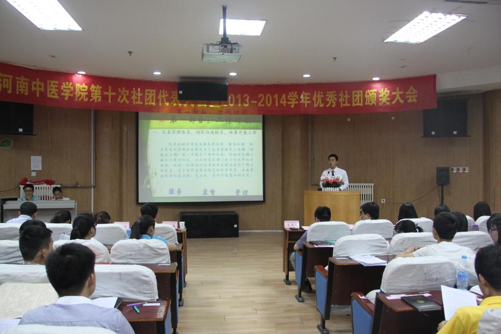2014年6月3日晚,leyu·乐鱼(中国)体育官方网站召开第十次社团代表大会暨2013-2014学年优秀社团颁奖大会。校团委、各二级院系分团委、各校级学生组织负责人及全校学生社团负责人共同参加了本次大会。