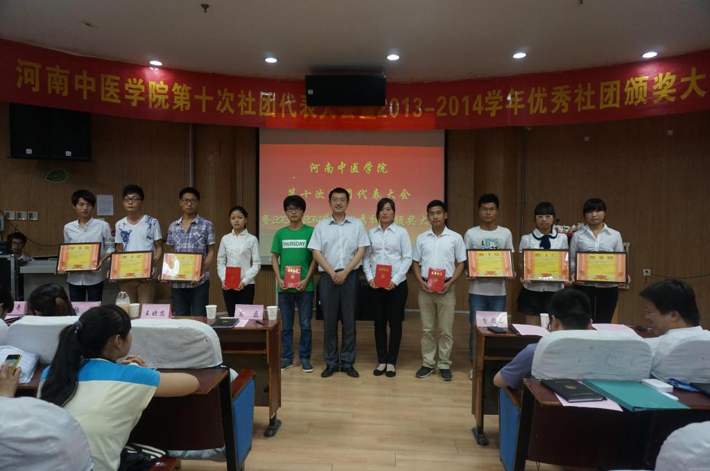 随后,大会对荣获2013-2014年度优秀学生社团、优秀社团负责人及优秀志愿服务类社团进行表彰,由校团委副书记高磊和王晓蕊分别为他们颁发了奖状和证书。