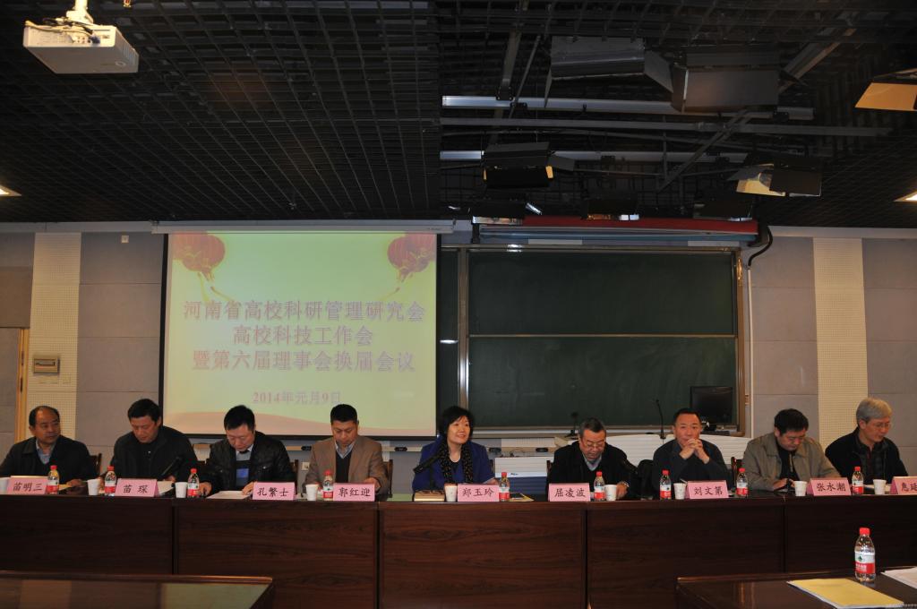 会议选举出新一届理事会名誉理事长、理事长、副理事长、秘书长、副秘书长;我院郑玉玲院长任理事长,各高校65名专家、教授当选为常务理事;按照研究会章程和惯例,全省各高校科技(研)处长(或副处长)均为省高校科研管理研究会第六届理事会理事;我院郑玉玲院长简要介绍了第六届河南省高校科研管理研究会工作规划。