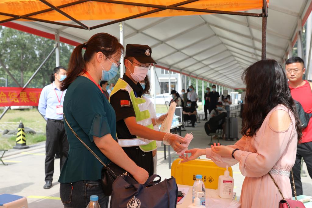 进入校园前工作人员为学生更换口罩