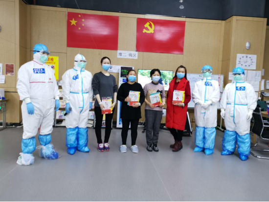 同时,江夏方舱医院还开展了一系列形式多样、精彩纷呈的活动进一步丰富患者的日常生活,有效辅助治疗效果。江夏方舱医院党民共建平台今日推出“三好舱友”推选活动,共计推选10名。豫二病区4名病人获得“三好舱友”称号,病区为获奖人员颁发了奖品。党民共建活动“不忘初心、牢记使命”主题教育知识竞赛豫二病区1名病人获得前十名,病区为获奖人员进行了颁奖。豫二病区开展生日庆祝活动,给3月份过生日的10位病人准备了大蛋糕,大家一起唱生日歌,祝愿他们心想事成,早日康复。第一临时党支部组织豫二病区病人党小组充分发挥党员模范带头作用,维持病区卫生和公共区域物品摆放,进行病区消杀工作。第二临时党支部召开支委会,对非党员同志入党事宜、注意事项和上报程序等进行了安排,对宣传工作进行了分工部署。