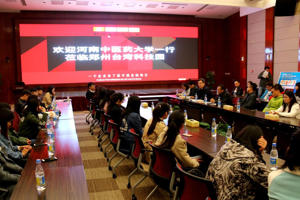 随后,人文学院师生来到了航空港区郑州台科产业园。台科产业园有限公司总经理常杰等公司负责同志对人文学院师生的到来表示热烈欢迎。在观看了航空港区和台科产业园宣传片后,常杰总经理从企业实力、企业精神、服务理念、企业文明等方面对公司作了介绍,他感谢人文学院给予企业的信任,表示企业的发展来源于人才培养,而院企合作会为企业提供良好的平台,希望与人文学院进一步开展多层次、多形式、多领域的合作。庞亚宾副书记在交流过程中讲到,人文学院历来重视学生实践能力、创新能力的培养,大学生更应主动提升创新创业能力,实现自我价值与社会价值的统一。他对院企合作模式及前景、学生岗位能力需求等方面谈了自己的看法,希望院企双方共同努力,优势互补、资源共享,开展全方位深入合作,共同为社会培养更多的高素质人才。