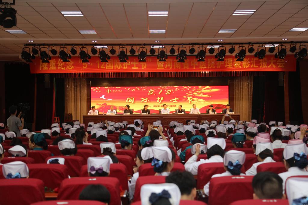 会议现场气氛欢快、热烈,参会护理工作者身着护理职业装,脸上洋溢着节日的喜悦。内外科护士身着圣洁的白色护士服,头戴燕尾帽,干练而又得体;妇科、儿科的护士们粉色的工作服,显得温馨而又柔和;急诊和手术室的天使们,深绿色的工作服象征着生命和希望;而ICU的护士们,紫色的工装是深沉的爱的象征。医院为护士们精心准备的一束束玫瑰花娇艳欲滴和漂亮的天使们相映成画。