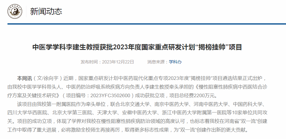 6.获国家重点研发计划“揭榜挂帅”项目1项,中西医防治重大疾病协同创新中心获批2024年度河南省协同创新中心,科研工作谱新篇