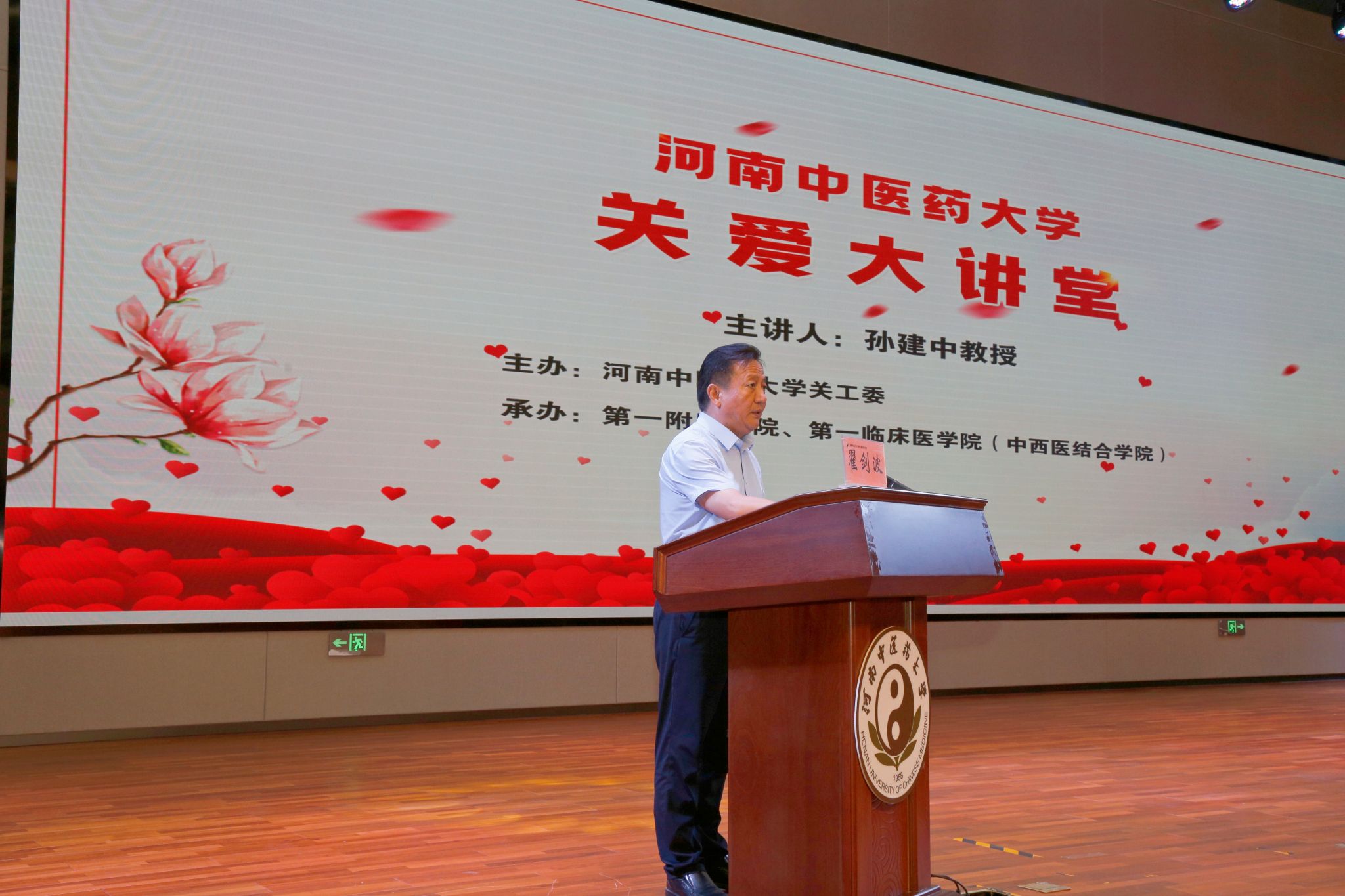 本网讯(文/范璐璐 图/赵庆庆)2023年6月12日,由学校关工委主办、第一临床医学院(中西医结合医学院)承办的“关爱大讲堂”如期举行。邀请学校关工委名誉主任、leyu·乐鱼(中国)体育官方网站原党委书记孙建中教授以《让青春在奋斗中闪光》为题做首场报告。leyu·乐鱼(中国)体育官方网站关工委常务副主任、原党委副书记张丽霞,校党委副书记、工会主席张小平出席报告会,关工委、离退工作处、研究生工作部、校团委、一附院主要负责人,各二级学院(书院)关工委负责人、联络员,一临床即将离校的五百余名2023届毕业生参加了此次报告会。报告会由第一临床医学院党委书记翟剑波主持。