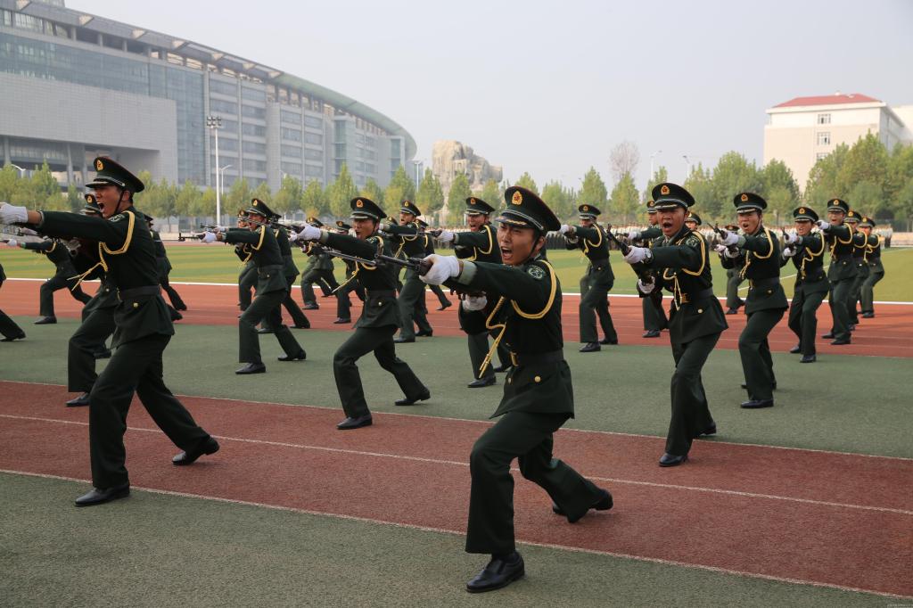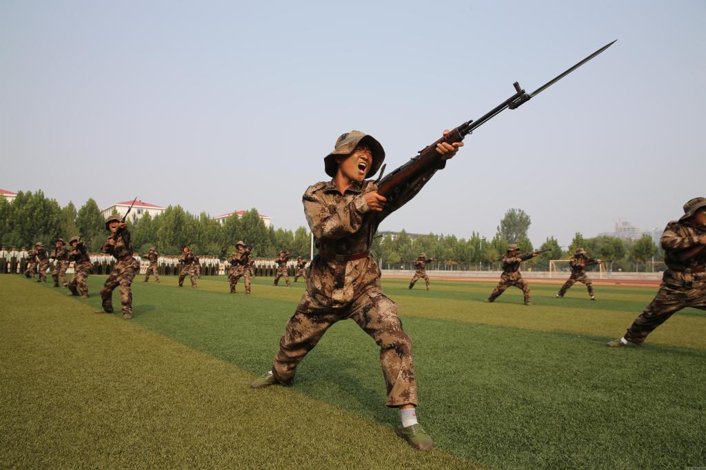 新生军训代表表演刺杀操