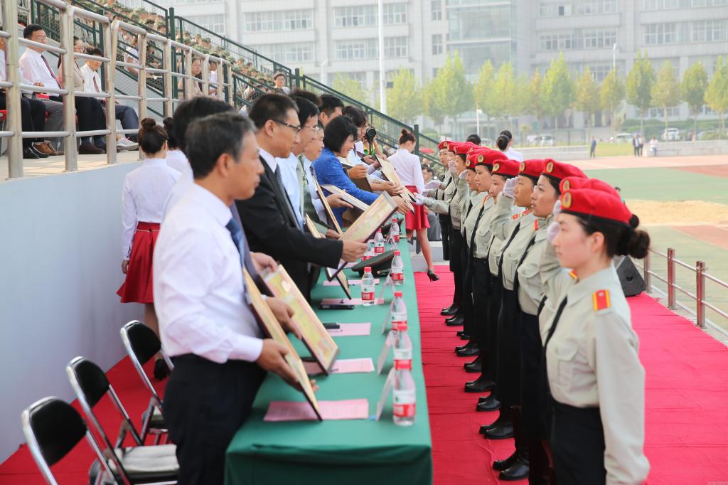 校领导为军训获奖集体和个人颁奖
