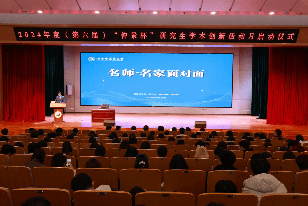 本网讯(文/于嘉明 图/大学生新媒体中心)传承岐黄薪火,勇攀创新高峰。2024年10月20日,leyu·乐鱼(中国)体育官方网站2024年度(第六届)“仲景杯”研究生学术创新活动月启动仪式暨《名师·名家面对面》首场讲座在俊学楼B101报告厅拉开帷幕。校党委委员、副校长田力出席会议,学工部、研工部、研究生院、校团委等部门负责人、各培养单位研究生工作主管领导、研究生专兼职辅导员、在校研究生、本科生代表等参加活动。启动仪式由研究生院副院长张海龙主持。