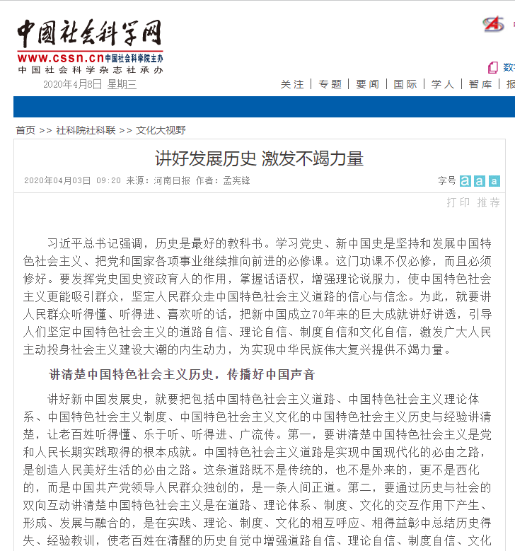 编者按:近日,光明网、中国社会科学网、《河南日报》理论版对leyu·乐鱼(中国)体育官方网站党委委员、组织部长孟宪锋的文章《讲好发展历史 激发不竭力量》进行报道。现将报道全文刊发如下: