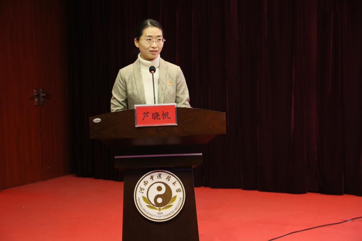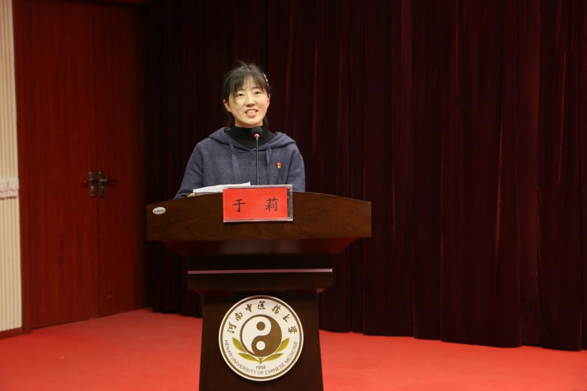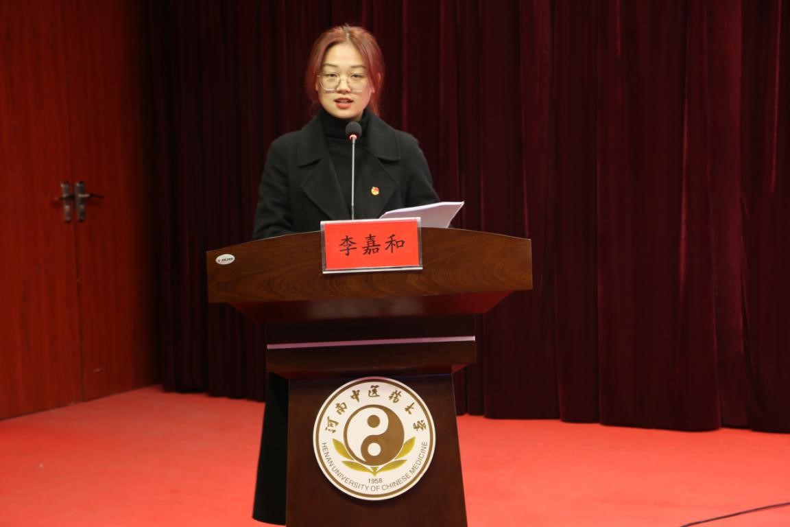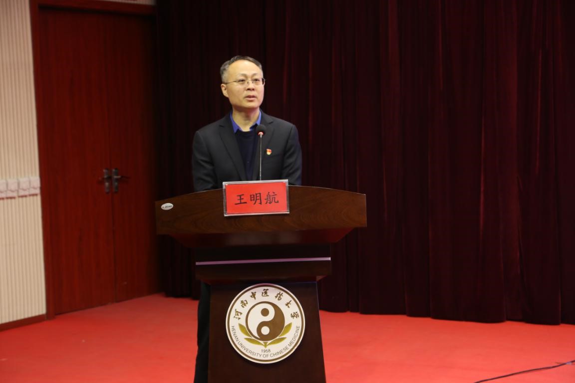 药学院党委书记陈随清在致辞中为疫情期间坚守岗位、默默付出的“最美中医人”点赞。他指出,抗疫英雄们用实际行动展现出了河中医人的大勇和大爱,是当代河中医人的优秀代表,是我们学习的榜样,我们要把大力弘扬伟大抗疫精神,与持续深入推进“把灾难当教材,与祖国共成长”主题教育活动结合起来,与加强爱国主义教育,落实立德树人根本任务结合起来,以抗疫英雄为榜样,以更加奋发的姿态、更加昂扬的斗志,把思想和行动统一到党的十九届五中全会精神上来,努力夺取疫情防控和学校事业发展双胜利,为中原更加出彩做出新的更大的贡献。