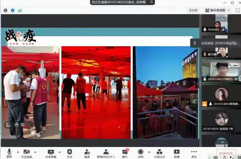 李雪、肖慧玲、王孜龙等6位同学分享了他们响应政府号召,开展疫情防控志愿服务,经培训后参与协助核酸检测、组织居民扫码登记、督促日常防护宣教、疏导人群、维持秩序、为医务工作者提供后勤保障等志愿服务的经历和感悟。